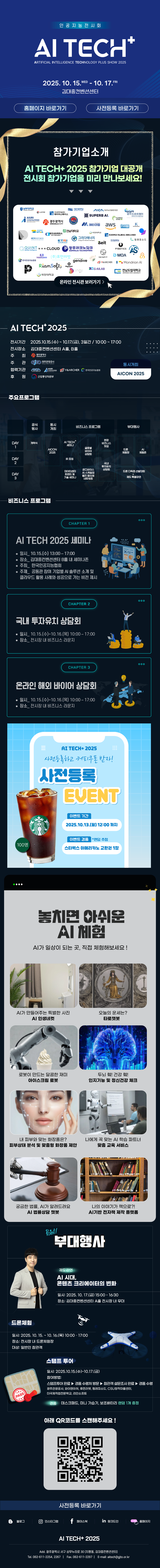 Global AI Tech Market AI TECH+ 미디어센터 공지사항 뉴스 [뉴스레터 3호] AI TECH+ 전시 주요 라인업 전격 공개 ⸝⸝⸝◟̆◞̆♡ 2025-10-11 < 이전글 [AI TECH+ 2025] 글로벌 AI 컨퍼런스 'AICON 2025' 목록 위로